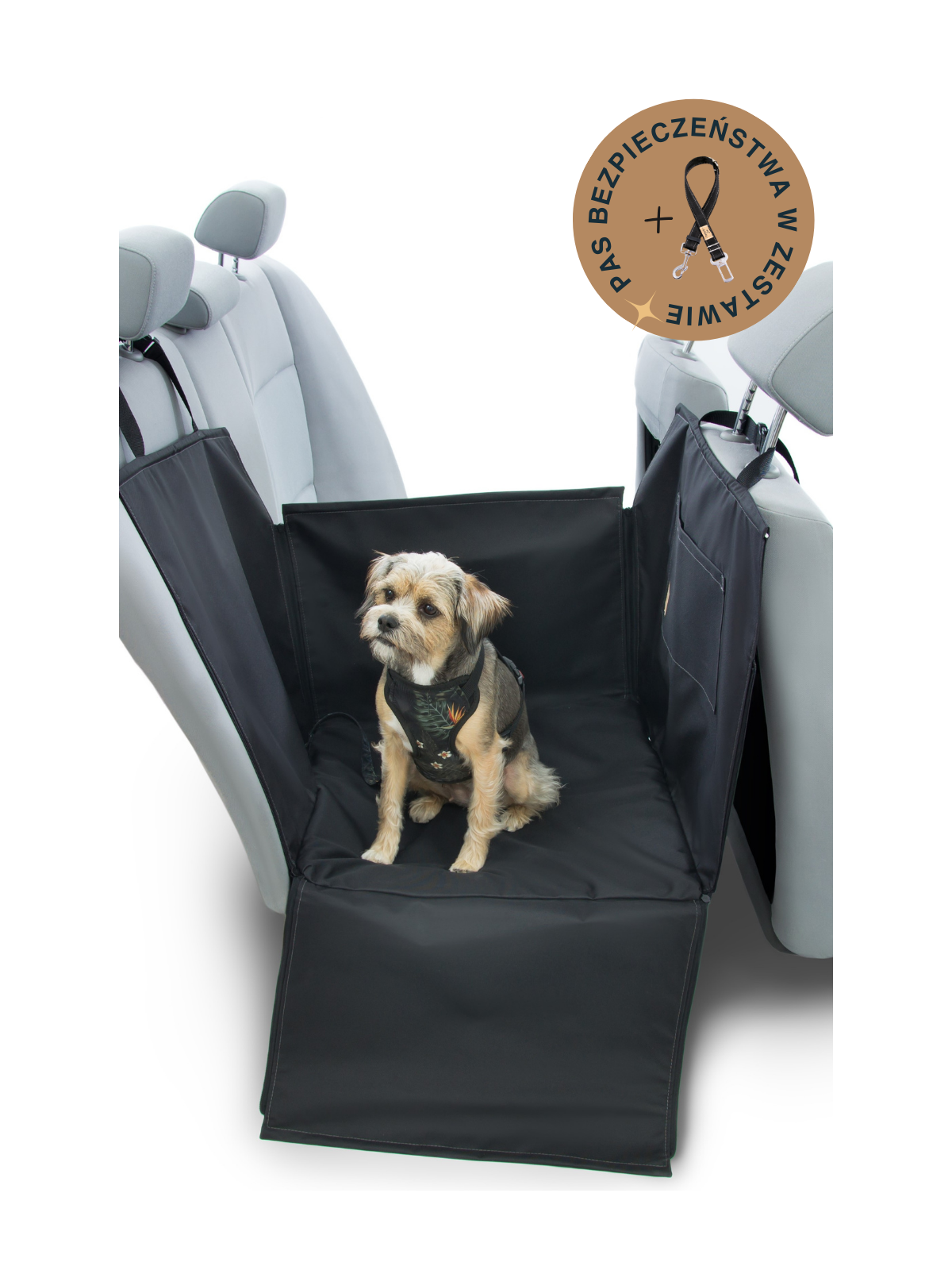 Dengu to mata samochodowa na połowę tylnej kanapy W ZESTAWIE PAS BEZPIECZEŃSTWA STANDARD W KOLORZE MONO*.