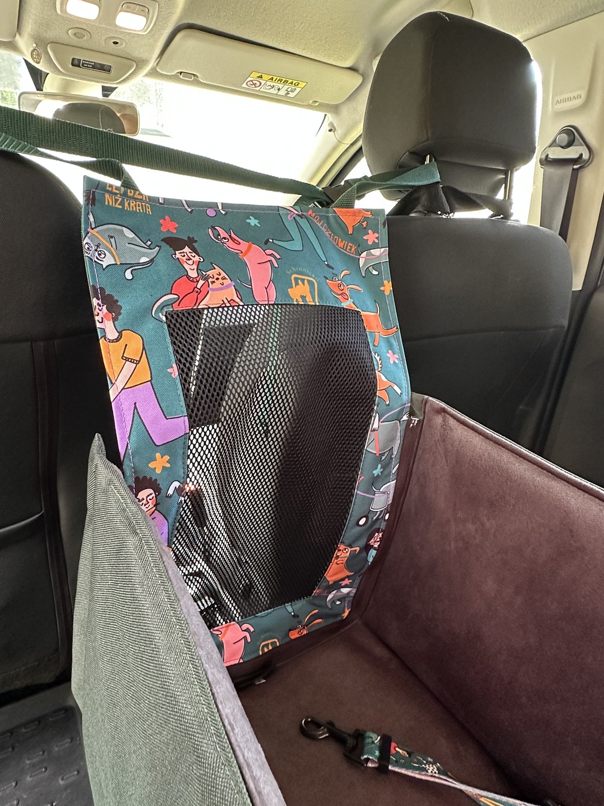 Nowa wersja maty MIK to jeszcze bardziej funkcjonalne rozwiązanie - może służyć jako mata samochodowa dla psa na środek tylnej kanapy, a po całkowitym rozpięciu suwaków zmienia się w wygodne legowisko do użytku poza autem.