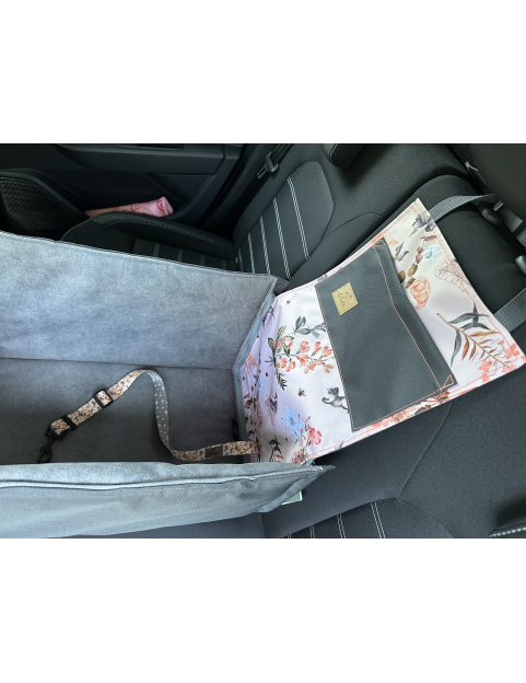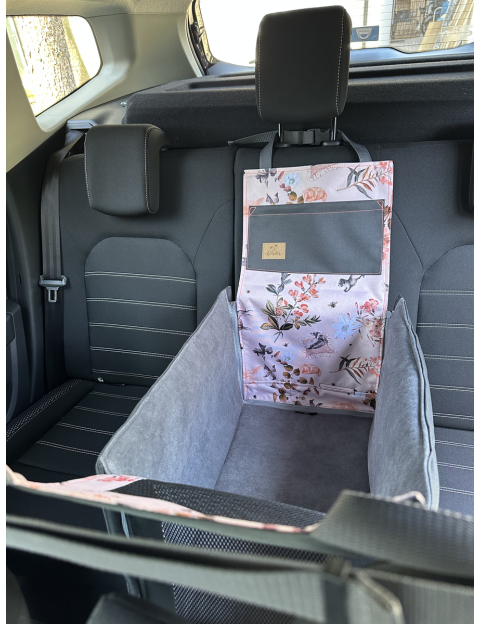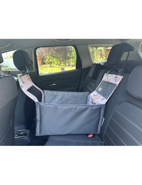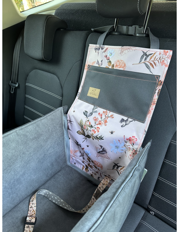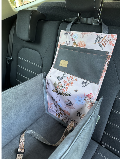 Mik - mata samochodowa FlowerHauer z legowiskiem dla psa na środek kanapy Z PASEM BEZPIECZEŃSTWA