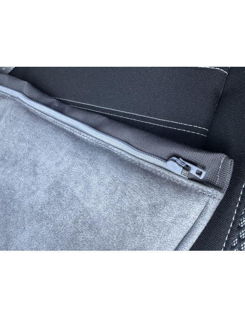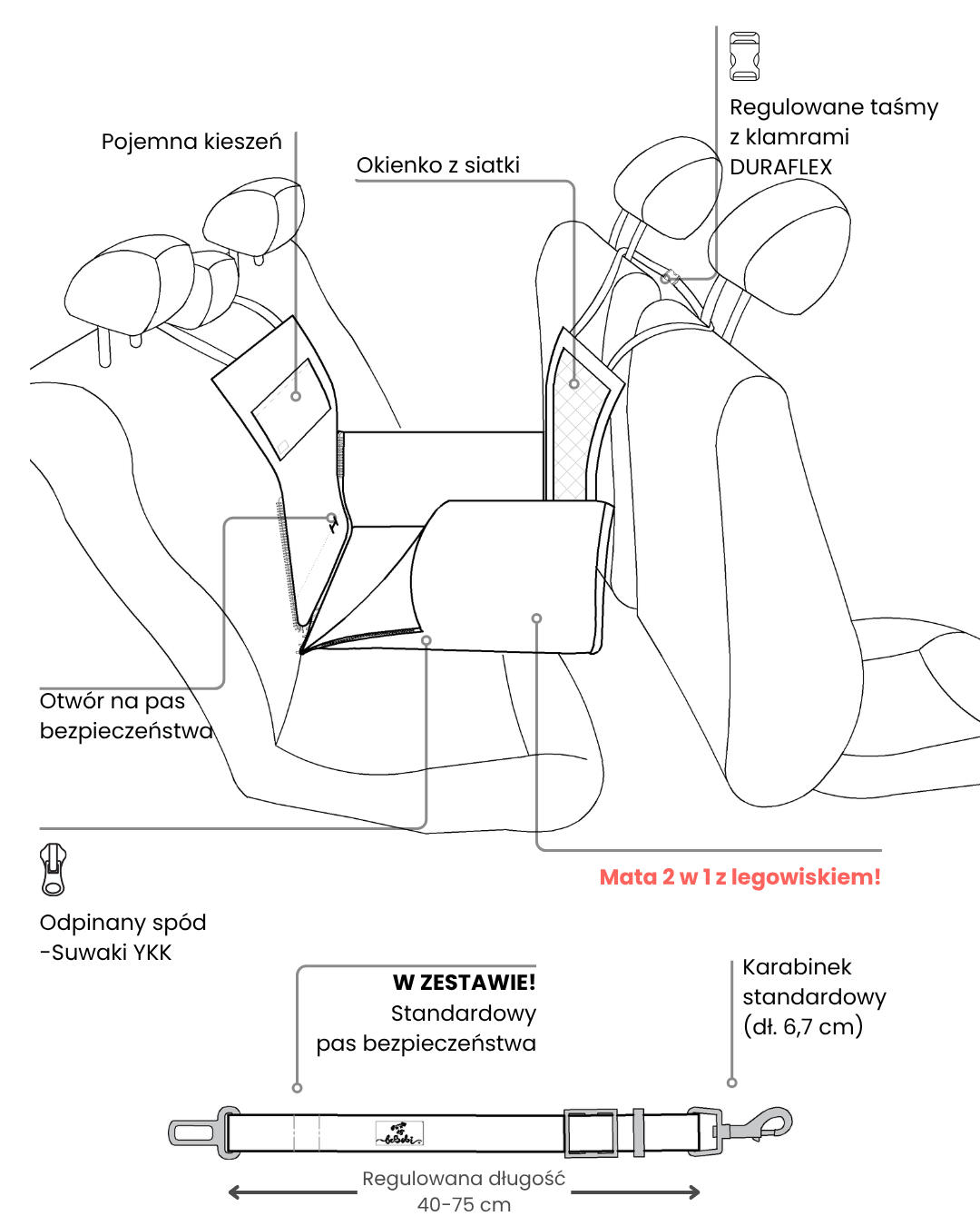 Nowa wersja maty MIK to jeszcze bardziej funkcjonalne rozwiązanie - może służyć jako mata samochodowa dla psa na środek tylnej kanapy, a po całkowitym rozpięciu suwaków zmienia się w wygodne legowisko do użytku poza autem.