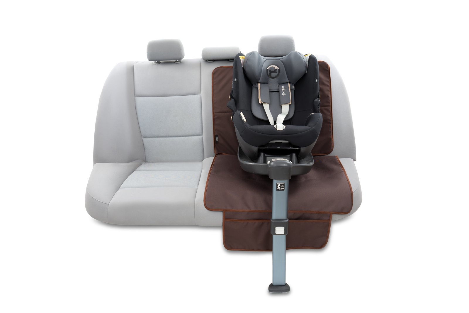 Model maty ochraniającej część tylnej kanapy pod fotelikiem dziecięcym z systemem IsoFix.