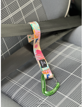 Pas jest z bardzo mocnym karabińczykiem alpinistycznym.