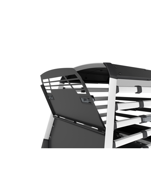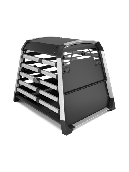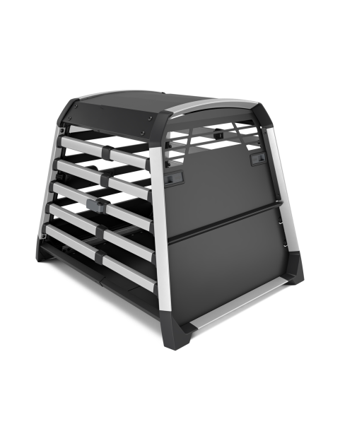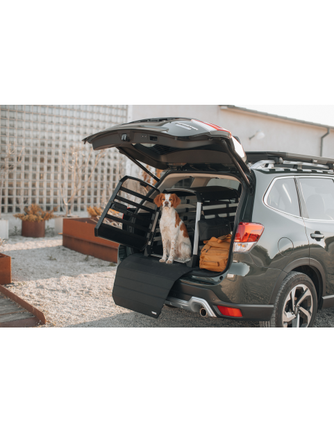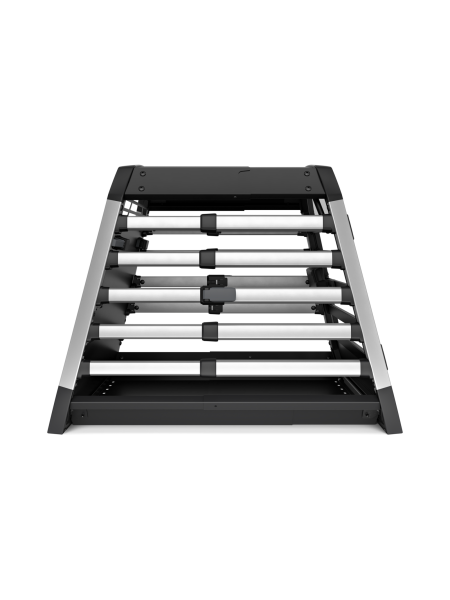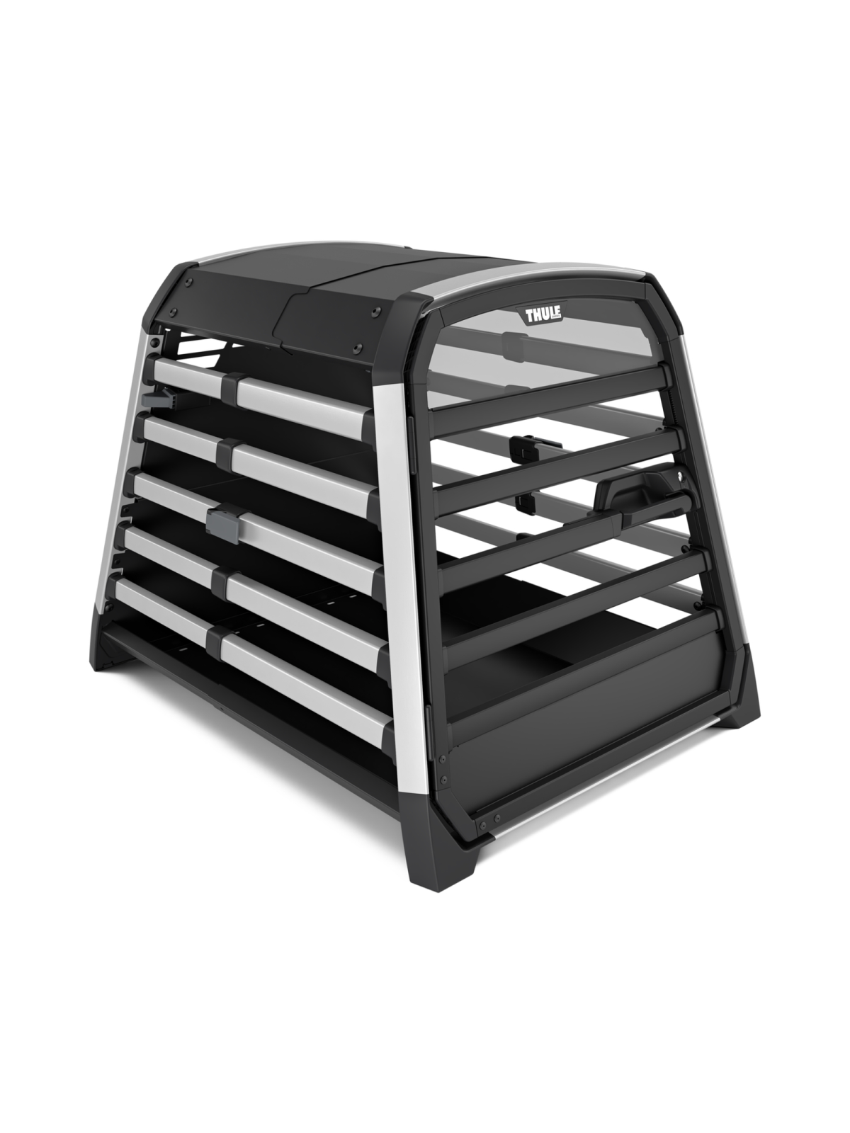 Bezpieczna klatka transportowa Thule® Allax z certyfikatem TÜV i testami zderzeniowymi zapewnia ochronę psa i pasażerów podczas jazdy. Regulowana głębokość i solidna konstrukcja gwarantują idealne dopasowanie do bagażnika i komfort pupila.