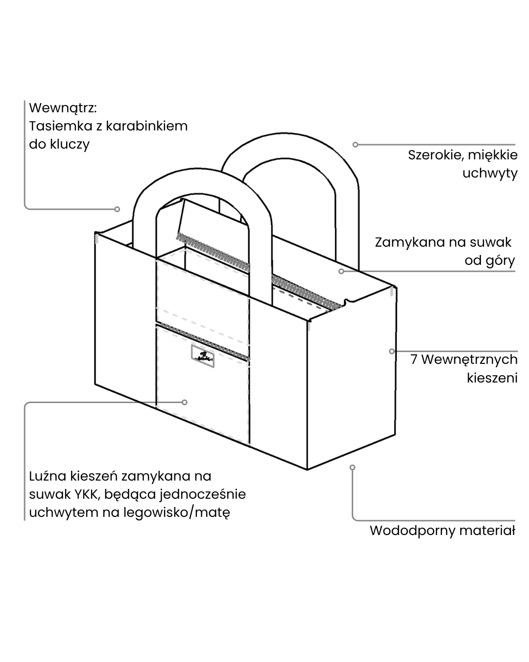 Materiał główny MONO/KOLOR: Oxford (100% poliester z powłoką PU) – wytrzymały materiał w jednolitym kolorze (MONO) lub z autorskim nadrukiem (KOLOR). Dzięki dodatkowej powłoce jest odporny na wilgoć i uszkodzenia.