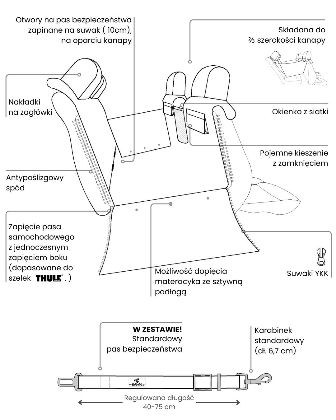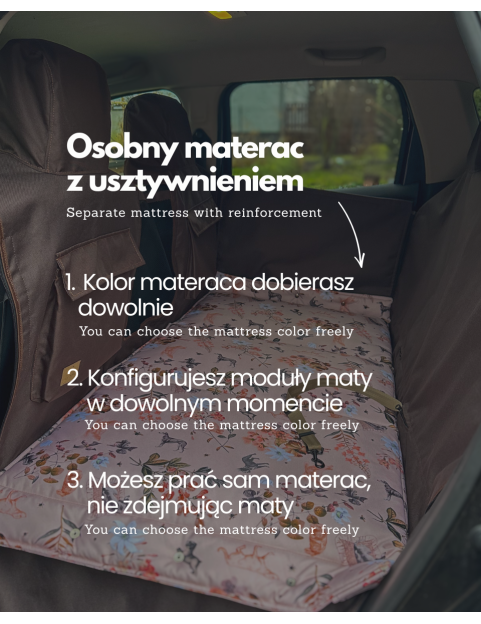 Przed zakupem porównaj wymiary maty z tylną kanapą samochodu, ponieważ obowiązuje wcześniejsza rozmiarówka.