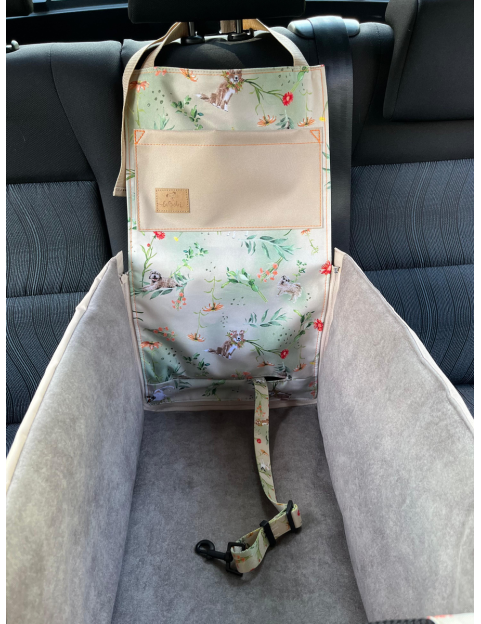 NOWY Mik - mata samochodowa z legowiskiem dla psa na środek kanapy Z PASEM BEZPIECZEŃSTWA