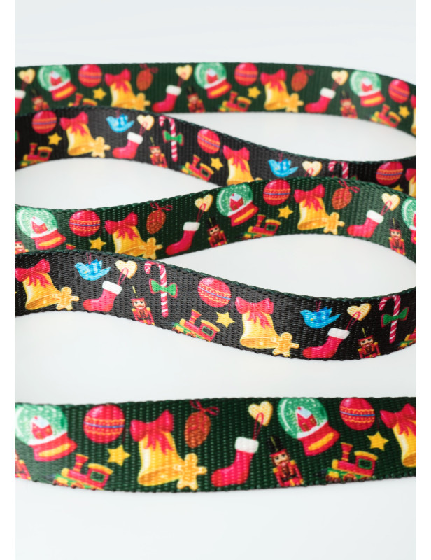 Wykonana z trwałej, dwustronnie zadrukowanej taśmy, ta smycz łączy funkcjonalność z urokiem świątecznego wzoru, idealnie wpisując się w atmosferę Bożego Narodzenia.