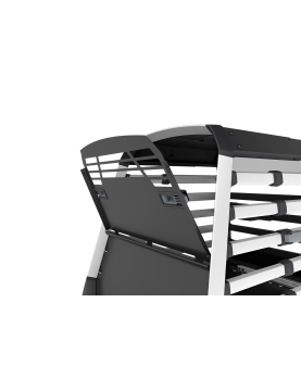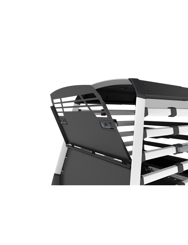 Każdy element został opracowany z myślą o ochronie i komforcie – zarówno psa, jak i pasażerów. Klatka przeszła zaawansowane testy zderzeniowe w Thule Test Center™ i posiada certyfikat TÜV SÜD. Zastosowana strefa zgniotu minimalizuje siłę uderzenia, a amortyzator gazowy pozwala płynnie otwierać i zamykać drzwiczki.