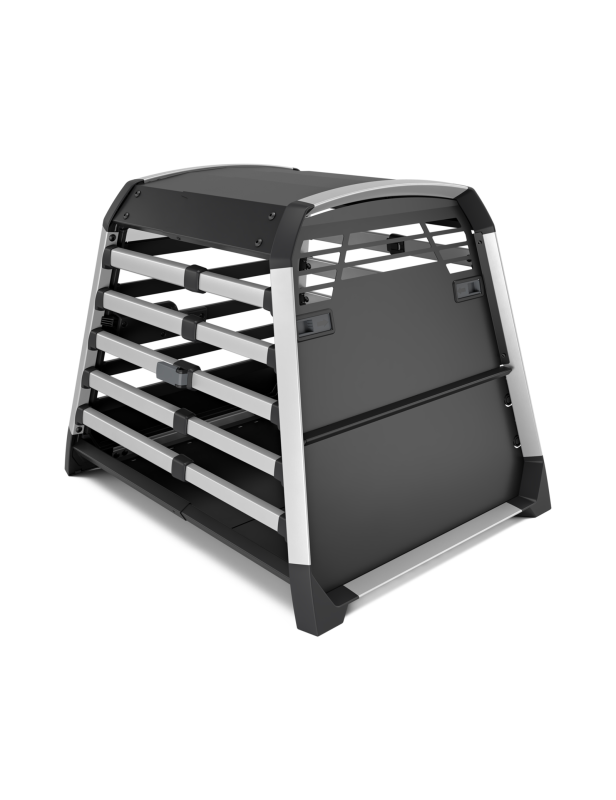 Bezpieczna klatka transportowa Thule® Allax z certyfikatem TÜV i testami zderzeniowymi zapewnia ochronę psa i pasażerów podczas jazdy. Regulowana głębokość i solidna konstrukcja gwarantują idealne dopasowanie do bagażnika i komfort pupila.