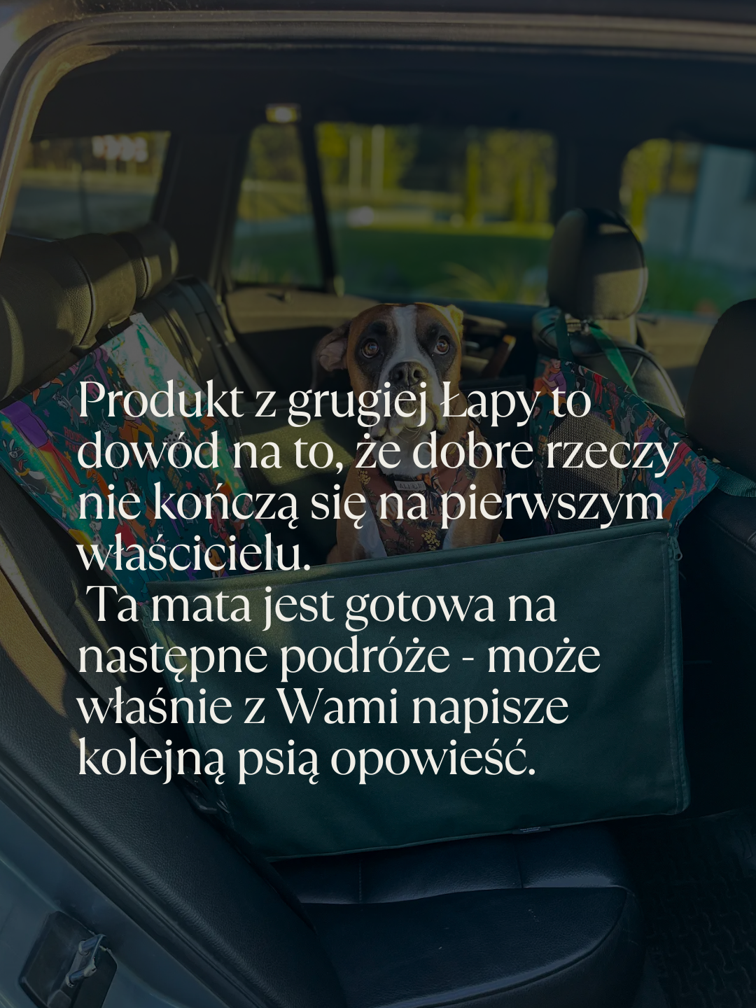 Ta mata do samochodu dla psa ma już swoją drogę za sobą, ale wciąż jest w świetnej formie i jest gotowa na kolejne wspólne trasy.